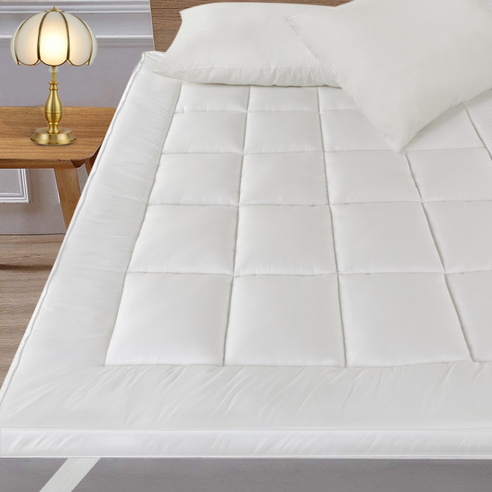 The 4Inch thick mattress topper adds an additional layer of plushness and comfort to your bedding. Quilted design ensures equal distribution of fiber filling for fuller loft so you can enjoy a comfortable sleep all night long