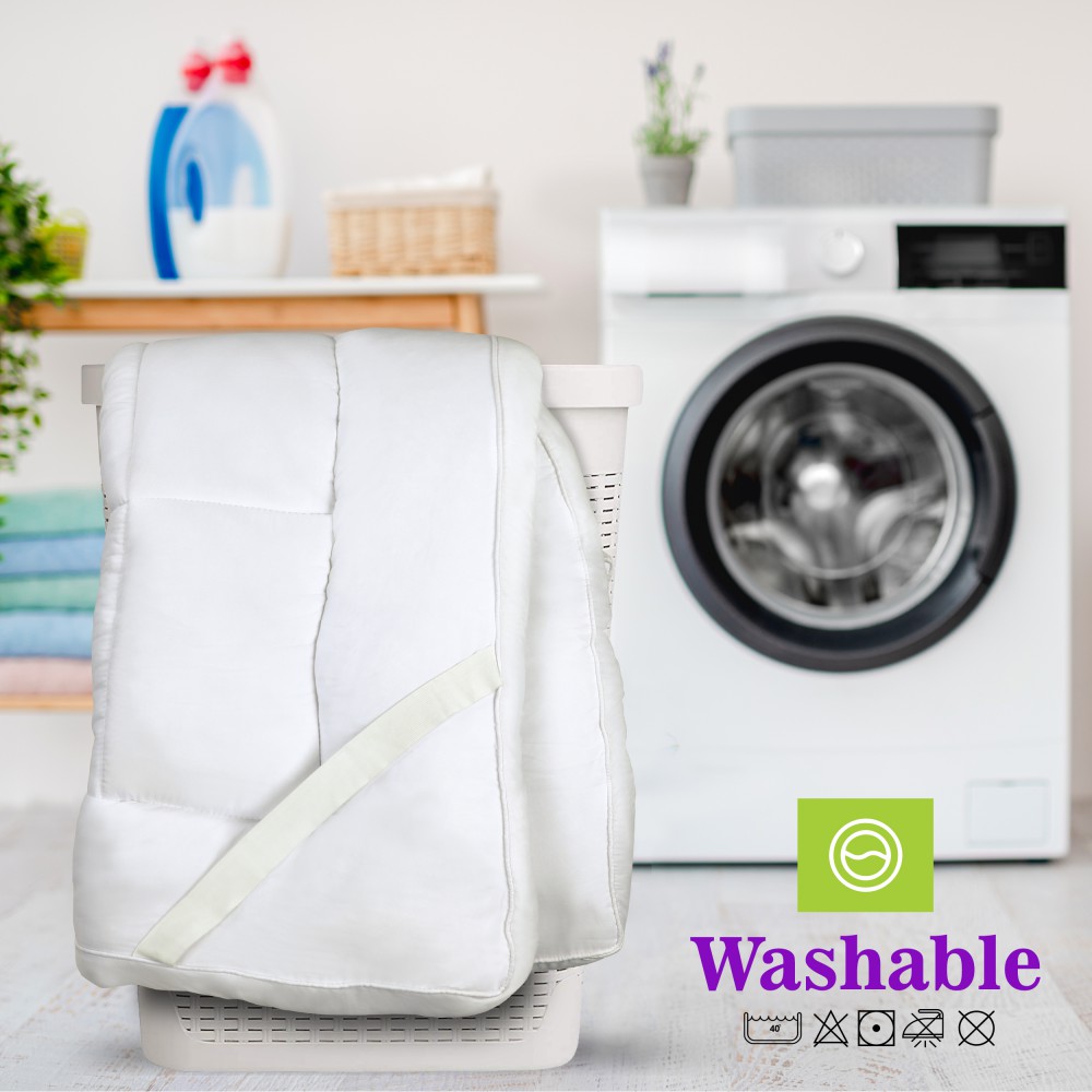 Made of Hollow fiber as inner filling and Micro fiber as outer fabric for adequate long-lasting cushioning, comfortable conforming and even support. The odor-free and breathable material of Mighty Soft double mattress topper promotes airflow to maintain the optimal temperature, offering you a relaxed and peaceful sleep
